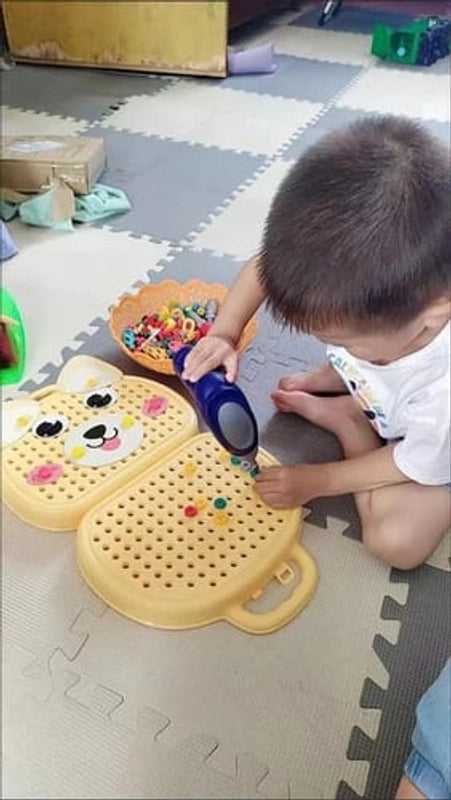 • Des heures d'exploration créative : Avec son assortiment de vis colorées, d'écrous et de pièces à assembler, chaque enfant devient un architecte en herbe, développant son imagination à l'infini sur le tableau perforé unique de la boîte à outils.