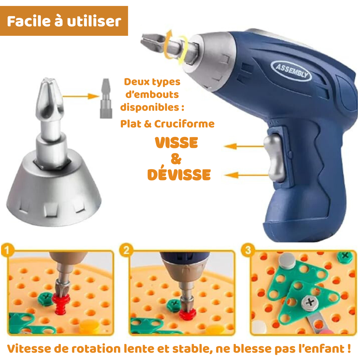 • L'apprentissage par le jeu, sans effort : Chaque manipulation du tournevis, chaque assemblage de pièce, affine la coordination œil-main et les capacités de résolution de problèmes, transformant le jeu en une expérience éducative enrichissante et intuitive.